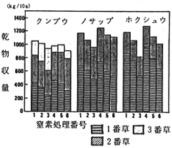 3.チモシーの生育特性解明試験…チモシー単播草地供試。生育および養分吸収経過、分げつ発生の消長などを調査。供試品種=クンプウ、ノサップ、センポク、ホクシュウ。