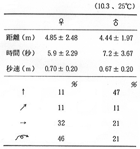 表3 羽化後日数別飛翔能力(10月5日〜17日22.7℃)