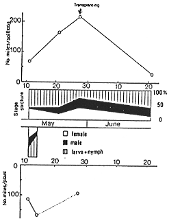 ケナガコナダニの発生消長(昭和58年)