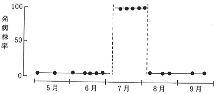 (3)本病は,雨よけ栽培(ビニールハウス栽培)が行われている地域の,夏どりホウレンソウで発生が顕著である。