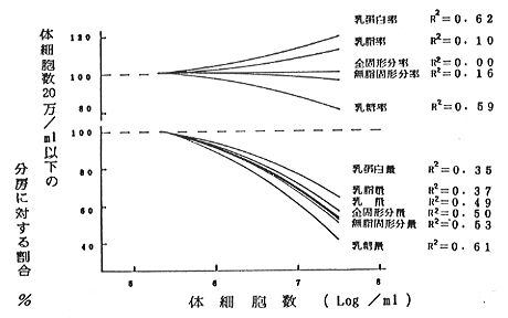 図 分房における体細胞と乳生産の関係