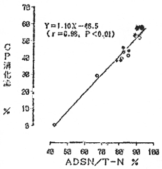 図2 くん炭化乾草のADSN値によるCP消化率の推定
