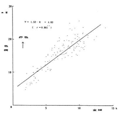 (5)カポチャの全糖含量と果肉色の赤みを示すa値との間には著しく高い相関関係(r=0.861**)が認められ、果肉の赤みが強いほど甘いカポチャであるといえた。また果肉の赤みの増加にともないβ一カロチンが増加した。