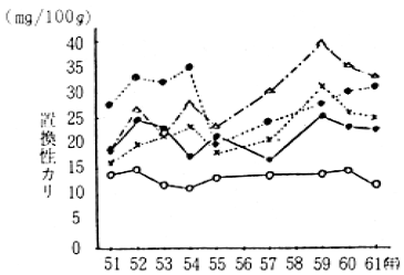 ②土壌の置換性カリは化学肥料単用・残さ持ち出し区では維持傾向であり,化学肥料単用・残さ還元区では高まる傾向であった。