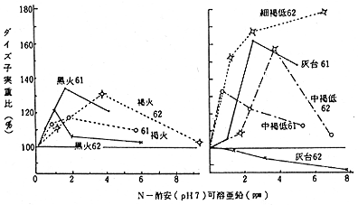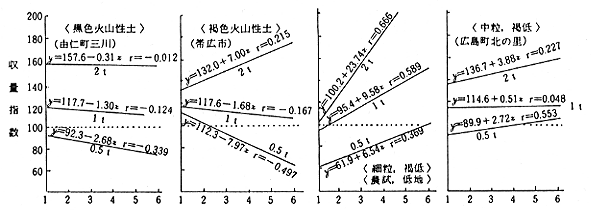 多量条件ではpHの低下,塩基バランスの乱れが多い。また作物収量は高まるが安定性に欠ける。