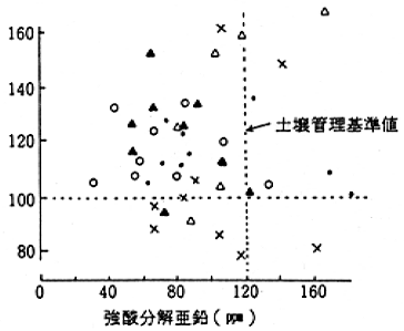 (4)簡易モニタリングの活用;従来の管理基準を基本とし,汚泥施用地で適用従来法(強酸分解法)によるモニクリングの実施状況は必ずしも高い密度でないので,これを補う立場で活用する。なお,この簡易モニタリング法は汚泥施用前歴のない圃場では適用しないこと。