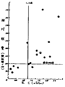図2 排土前0〜5cm層の土壌ECと5cm排土効果の関係
