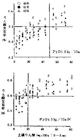 2)土壌りん酸含量別の施肥法の確立(昭和60〜63年)