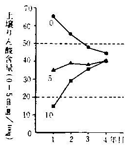3)このことから、りん酸の土壌診断基準値を20〜50mg/100gとし、それを上回る場合には無りん酸栽培が可能となった。