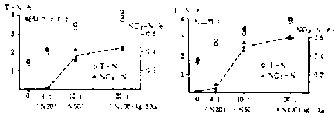 E一方、草地では尿10t/10a(N50s/10a)までは牧草の収量増加に反映し、流出水中への窒素の移動はわずかにすぎなかった。しかし、20t/10a(N100s/10a)以上では牧草生育が阻害されると共に高濃度の窒素の流出が認められた。