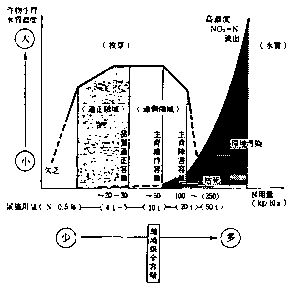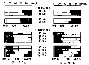 以上の点を集約すると、環境保全水質からみた糞尿の施用限界量は、裸地条件では、糞で10t/10aとみられた。また、草地では牧草生育が旺盛な条件で、糞は50t/10a、尿は10t/ 10a(N50s/10a)と考えられた。