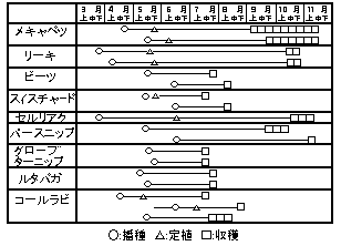 | スイスチャード | H1.5.15 | 5.30 | 100(3)×20 | 1,000 | 1.8 | 2.4 | 1.8 | |