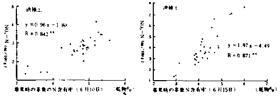 第1図 茎葉のN含有率と土壌NO3-Nとの相関関係(S63)