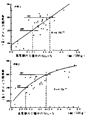 第2図 土壌中のNO3-Nと最大ツル長との相関関係