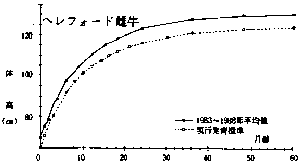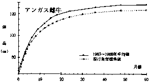 24か月齢でアンガス、ヘレフォードでそれぞれ約5㎝、約7㎝現行標準値より高かった。雄牛についても