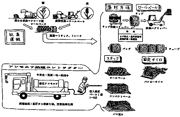 ①新アンモニア処理の基本システムとしてロールベール収集→ベールラップ密封→注入装置による液化アンモニア注入装置を設計した。新注入装置は安全性を優先させ、国内法規に準拠して設計し、開発させたものである。