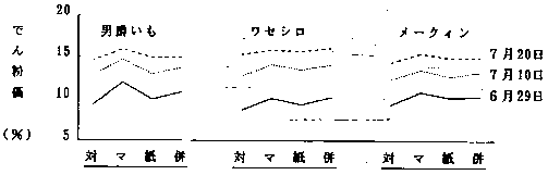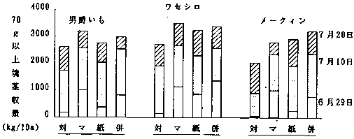 2)ポリフィルムマルチ栽培の特徴としては、第一に圃場での地温の上昇があげられ、初期生育が良好であったため、早掘りでの塊茎収量が多く、でん粉価も高かった。収益性が著しく向上した。
