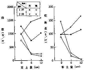 ①土砂含量の増加による出芽・定着性の向上と干ばつ処理の影響