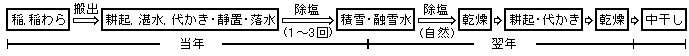 2)稲、稲わら搬出及ぴ除塩のため代かきは、当年秋に実施し、翌年春先はできるだけ土壌の乾燥化を図る。