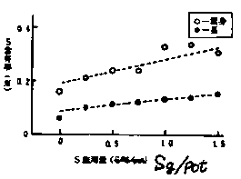 (4)S施用量増加によって、葉身および茎のS含有率は高まった。しかし、葉身と茎の含有率差(葉身S-茎S)の値に大きな変化がなかった。(図-3)