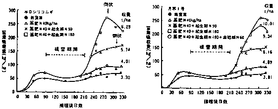 1)多収性品種の育成にあたっては、後期重点窒素施肥法に対する高い反応性を持つことが望まれる。