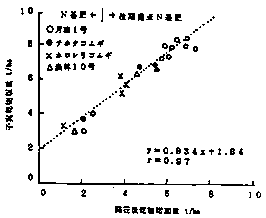 図3 止葉期の第2葉身Nと子実たんぱく質の関係(1983年)