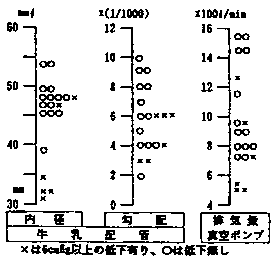 3)以上から、真空ポンプ排気量は、搾乳部台数をnとすれば、150×n×150(L/min)で得られる値が望ましいと判断された。また、迅速な排気量及び漏れチェックのためにY形管とフルボアのバルブから成るテストポートと真空ポンプ吸入口近くの配管に取りつけることが必要と観察された。