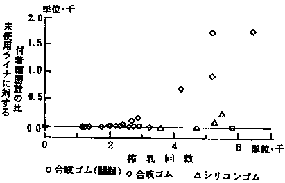 (3)ライナゴムの劣化度合調査:使用回数と破断強度および細菌の残留性調査