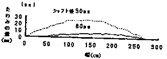 グラスシーダの後部鎮圧輪のシャフト径を50mmから80mmに改良した結果、シャフトのたわみが最大26mmから5mmになり(図2)、均一な鎮圧が行えるようになった。