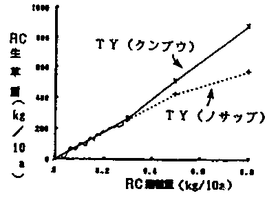 | 処理 | 出芽数(本/㎡)(89.9.14) | 2年目乾物収量(kg/10a) | ||||