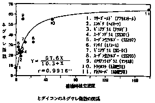 | 1987 | ゴボウ | Y=50.0X/(2.9+X) | Y=25→X=2.9 |
