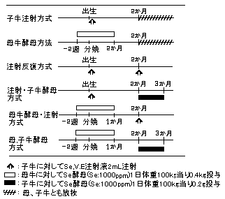 | (3)-1. | 分娩前の母牛に対する第2胃内留置Seペレット(鉄との合金、Se10%含有)2個の投 与は、長期にわたり母、子牛の血清Seの低下を抑え、簡便かつ有効な白筋症予防法と考 えられた。 |