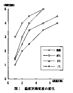 (1)製造後の温度管理…基本工程において製造したカットゴボウの温度別の商品性保持期間は、室温では