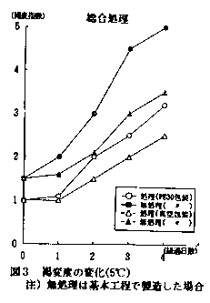 (6)包装…含気包装に比べ真空包装は褐変および生菌数増加を抑える。しかし、常温流通では真空包装