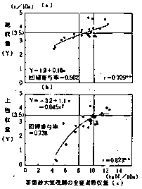 認めたが、乾物生産が700kg/10a以上および窒素吸収量が10kgN/1Oa以上での増収率は小さかった