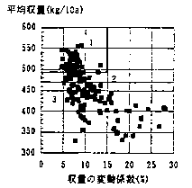 であったが、1970〜1990年の21カ年のうち、冷害年5年を除く16カ年の平均収量と変動係数により496㎏