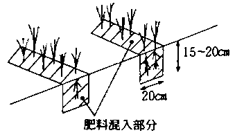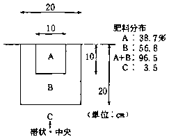 2)試作機の帯状全層施肥装置は施肥幅20cm,深さ15〜20cmの範囲に95%以上の肥料を施用することができる。これによって,全面全層施肥よりも大幅な施肥量の節減が可能となった。