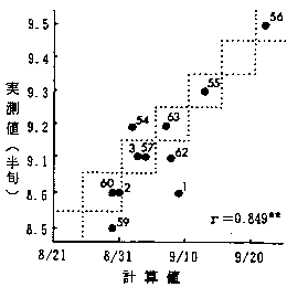 (3)このモデルは無防除条件に基づいて作成されているので,防除条件では防除時点で計算値を実測値で修正する必要がある。