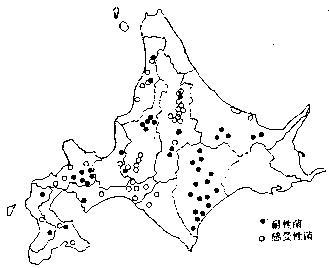 図1 豆類灰色かび病耐性菌の全道分布図