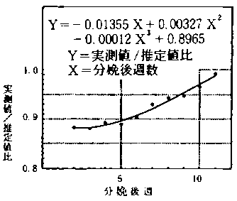 図1 分娩後週数とDMIの実測値/推定値比の関係