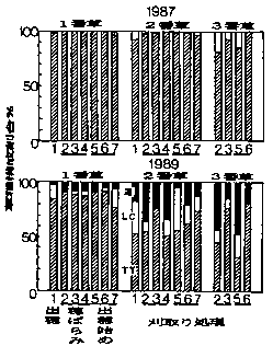 試験1.早刈り草地の刈取り管理(1987〜1989年)
