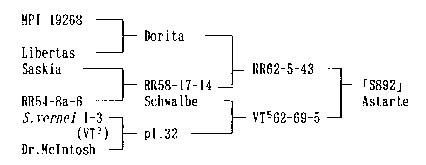 ばれいしょ輸入品種「S892」は、耐病虫性、多収性およぴでん粉特性に優れた品種の育成を目標に、オランダアベベ社において「RR62-5-43」を母、「VT562-69-5」を父として交配し、以降選抜を加え育成したものである。昭和50年にオランダで「Astarte」の名で公開された。