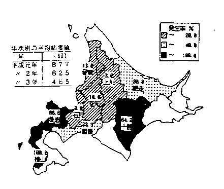 に少なかったのは、石狩、空知、上川、留萌支庁の道央地帯であった(図1)。