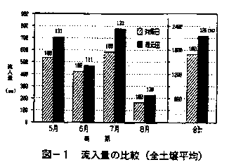 表1 減水深調査結果(平成4年6月22〜23日) (単位:mm/day)