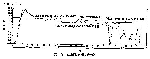 する。また、かんがい期間を通じた平均取水量は各年次とも7〜11m3/sの値で推移していた。