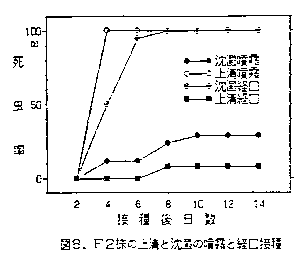 高い値を示し、虫体内接種菌濃度が濃いほど死亡までの日数が短かったが、最高死虫率は接種菌液