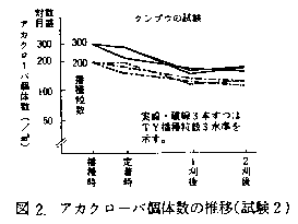 RC個体数は相手TYの播種量とは無関係に推移しRCは播種量の差異をそのまま秋まで維持した(図2)。