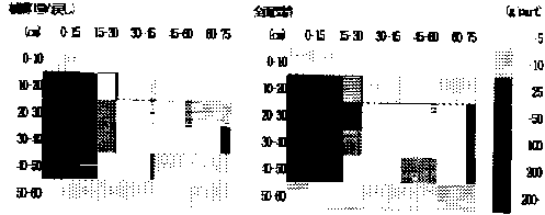 | 試験処理: | (1)植構法1(有機物、土改材埋め戻し)(2)植構法2(有機物、土改材混合) |