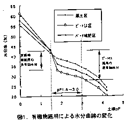 2)有機物の施用は腐植含量を高め土壌を膨軟化した。これにより、土壌の有効水分が増加し、また肥料保