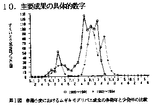 (1)近年、被害の多かった上川支庁管内北部でもほとんど成虫が取れず、被害もなく地域間差は判然としなかっ